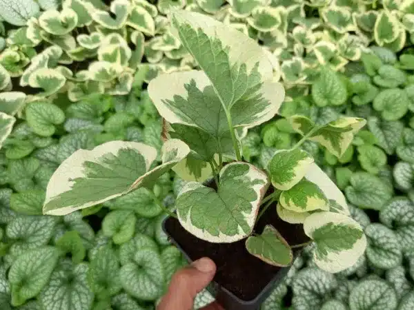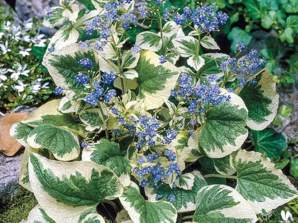 Brunera wielkolistna VARIEGATA wyróżnia się od pozostałych odmian bruner. Jest to odmiana o charakterystycznych, zielonych liściach z białym lub kremowym obrzeżem. Odmiana ta jest popularna w ogrodach ze względu na swoje atrakcyjne, ozdobne liście o sercowatym kształcie. Liście są duże (ok. 10-15 cm długości) i zwykle mają delikatnie faliste brzegi. Są jasnozielone z białym lub kremowym obrzeżem, które może być nieregularne lub regularne w zależności od rośliny.
