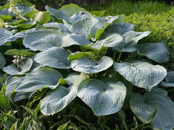 Funkia BIG DADDY to jedna z wyższych odmian. Dorasta do 60 cm wysokości i prawie metrowej szerokości. Liście tej funkii są duże, sercowate, kielichowate, szaroniebieskie. Im bardziej zacienione stanowisko, tym odcień liści jest głębszy. Dodatkową ozdobą są wyrastające na łodygach ponad liście trąbkowate, białe kwiaty.