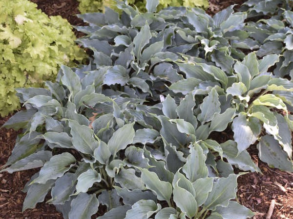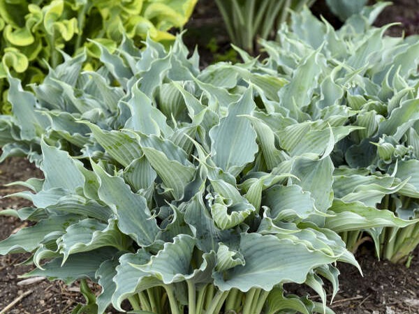 Funkia SHADOWLAND ® ‘Waterslide’ to odmiana o mocno pofalowanych liściach o ciężkiej strukturze. Niebieskie, faliste liście wyglądają jak woda falująca w cienistym ogrodzie i utrzymują swój niebieski kolor przez cały sezon letni. Późnym latem na proporcjonalnych pędach kwiatowych pojawiają się lawendowe kwiaty. Ta średniej wielkości Funkia nadaje się zarówno do terenów zieleni jak i do pojemników.