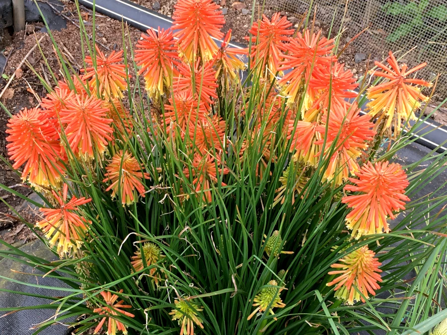 Trytoma POCO DAYBREAK wytwarza grube kłącze, rzadko łodygi naziemne. Liście równowąskie, zwężające się stopniowo aż do wierzchołka, o marginesach całobrzegich lub skąpo ząbkowanych w kierunku wierzchołka, głęboko rynienkowate, najpierw sztywno wyprostowane, potem rozłożyście wyginające się, ciemnozielone do modrych, twarde, osiągające szerokość do 2 cm.