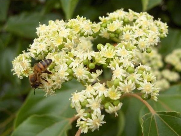 Zakwita w pierwszych dniach sierpnia. Kwiatów ma bardzo dużo i wydziela nektar tak obficie, że żadne z drzew rosnących w naszym klimacie nie jest tak licznie odwiedzane przez pszczoły jak Ewodia. Wydajność miodową młodych drzew w przeliczeniu na jednostkę powierzchni określono na średnio około 200 kg/ha.