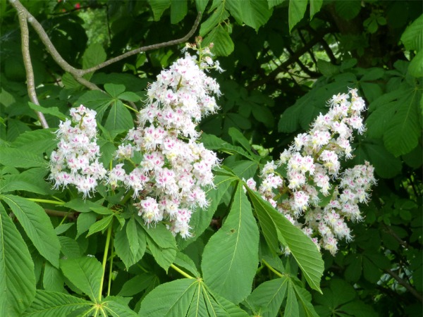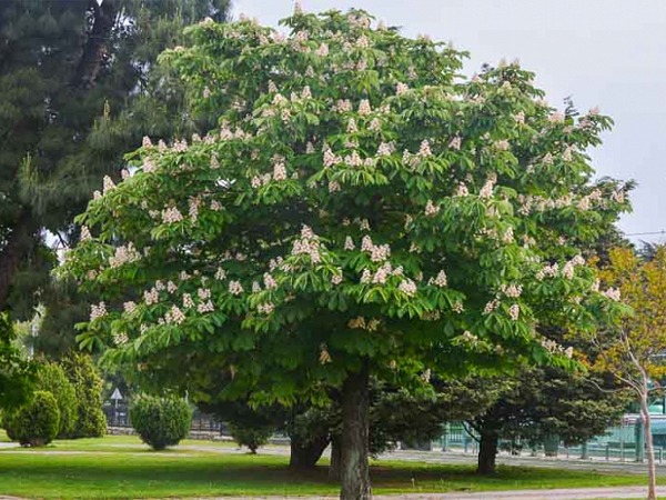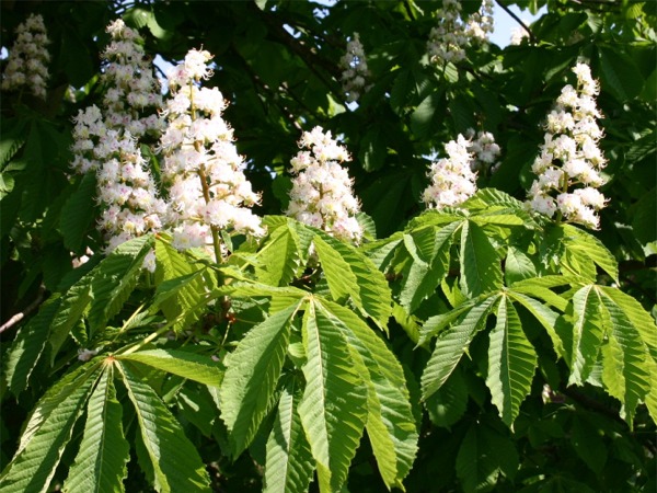 Drzewo jest efektowne o każdej porze roku – w czasie rozwijania młodych liści (walorem jest ich wczesny rozwój), kwitnienia, owocowania i przebarwiania się liści. Kwiatostany długości do 30 cm, stożkowate, wzniesione do góry. Korona biała z żółtymi plamami, które po zapyleniu stają się czerwone.