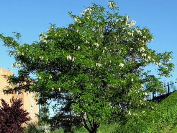 Pospolicie znana jako grochodrzew akacjowy, robinia biała czy fałszywa akacja – gatunek drzew należący do rodziny bobowatych (Fabaceae). Pochodzi z Ameryki Północnej, z obszaru USA, ale rozprzestrzeniła się i zaaklimatyzowała na wszystkich (z wyjątkiem Antarktydy) kontynentach świata. Do Europy sprowadzona została w 1601 roku jako drzewo ozdobne, była sadzona w parkach, później także w lasach. Drzewo dorastające do 25 m wysokości o koronie luźnej i nieregularnej. Pień rozwidla się nisko nad ziemią w grube konary. U nasady każdego liścia występują prostopadle do pędu dwa duże, ciemnobrązowe ciernie.