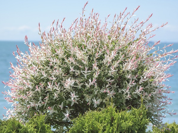 Wierzba całolistna HAKURO-NISHIKI to silnie rosnący krzew o oryginalnym zabarwieniu liści oraz kulistej i gęstej koronie. Należy do rodziny wierzbowatych (Salicaceae). Pochodzi z Japonii. W Polsce spopularyzowano ją dopiero w latach 90-tych XX wieku. W dobrych warunkach, jakim jest słoneczne i wilgotne stanowisko, osiąga do 3 m średnicy. Liczne i smukłe gałązki, pojawiające się u nasady rośliny, nadają wierzbie piękny kształt. Pędy gładkie, mało rozgałęzione, brązowo-czerwono wybarwione. Kolor gałązek sprawia, że roślina jest atrakcyjna także w stanie bezlistnym.