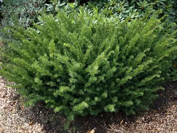 Pędy tej odmiany są sztywne, proste i wznoszą się pod kątem ostrym, młode są zielone, a starsze pokrywa brązowa kora. Igły nieregularnie ułożone na gałązkach, ciemnozielone o długości ok. 2,5 cm i szerokości 3 mm. Odmiana męska, nie zawiązuje nasion. Polecana do parków, zieleni miejskiej i osiedlowej oraz ogrodów przydomowych.