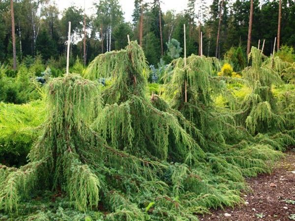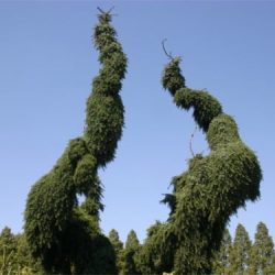 • Młode rośliny można prowadzić przy paliku, dzięki temu wykształcą pionowy przewodnik, egzemplarze rosnące swobodnie przyjmują zwykle formy bardziej szerokie i nieregularne.
