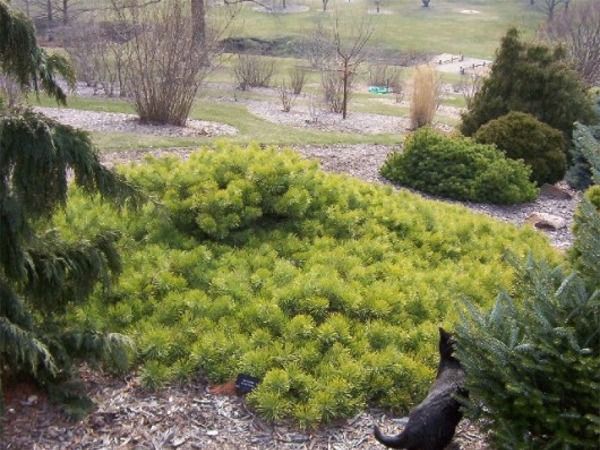 Sosna pospolita HILLSIDE CREEPER to ciekawa, prawie płożąca odmiana sosny pospolitej o gęstej zwartej budowie. Karłowa sosna o horyzontalnym, płożącym pokroju. Nie wytwarza pędu przewodniego. Początkowo wzrost silny głównie na szerokość, później rośliny mocno zagęszczają się i nieco wypiętrzają. Po 10 latach dorastają do 0,3 m wys. i 1,5-2 m średnicy. Roczne przyrosty 15-30 cm. Długość i ułożenie igieł jak u zwykłej sosny pospolitej, natomiast barwa zróżnicowana. Igły latem niebieskozielone, zimą przebarwiają się na jasny, żółtawozielony kolor. Obficie zawiązuje szyszki, które stanowią dodatkową ozdobę.