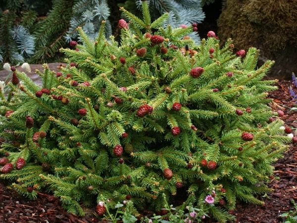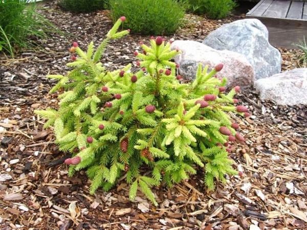 • Dobry do sadzenia w małych ogrodach, na rabatach i skalniakach, wszędzie tam, gdzie można podejść blisko rośliny i podziwiać niezwykłe szyszki na małym krzewie.