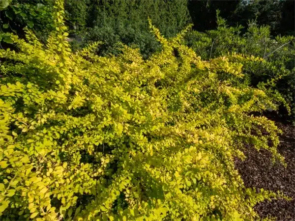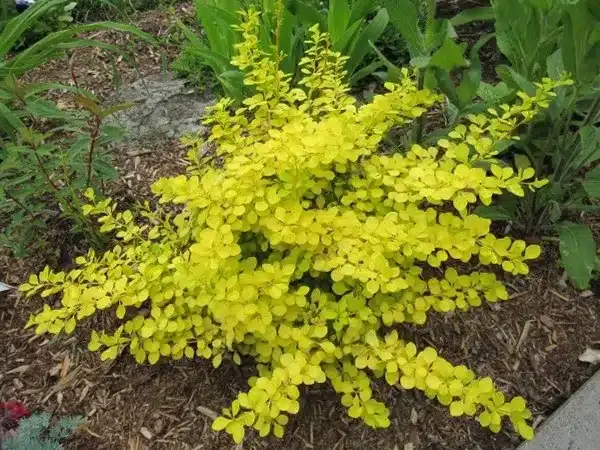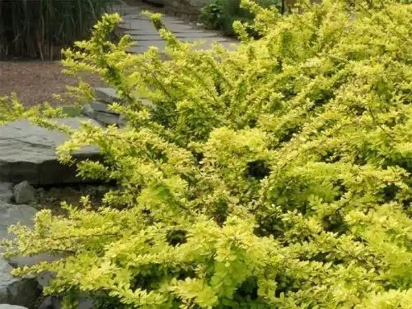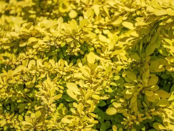 Berberys thunberga GOLDEN CARPET to gęsty, kolczasty krzew o jasno wybarwionych liściach, dorastający do 1 metra wysokości. Niski krzew o pokroju krzaczasto rozłożystym. Liście żółte, wewnątrz krzewu zielonkawe, dają efekt dwubarwności, na zimę opadają. Odmiana idealna do zadarniania dużych powierzchni w przestrzeni miejskiej.