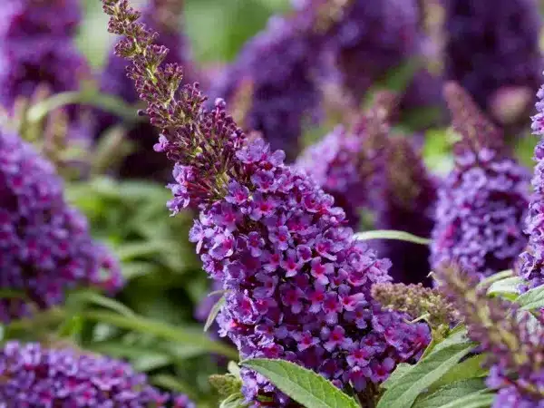 Budleja BUTTERFLY CANDY ® Little Purple to bardzo atrakcyjny, miniaturowy krzew o zwartym i rozłożystym pokroju. Krzew o lancetowatych, zielonych, matowych liściach omszonych od spodu. Pachnące, fioletowe kwiaty zebrane są w wiechy ok. 20 cm długości. Swoim aromatem wabi licznie pszczoły i motyle. Rośliny kwitną na tegorocznych pędach, dlatego wiosną wymagają silnego cięcia (nad 3-4 pąkiem). Przed zimą wymagają starannego okrycia, szczególnie podstawy krzewu. Odmiana idealna na balkony i tarasy.