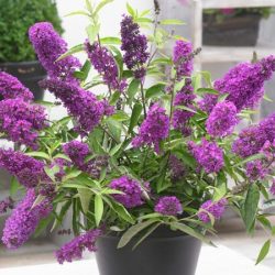 Budleja HUMDINGER ® Lavender Cupcake to bardzo atrakcyjny, miniaturowy krzew o zwartym i rozłożystym pokroju. Krzew o lancetowatych, zielonych, matowych liściach omszonych od spodu. Pachnące, jasno-fioletowe kwiaty zebrane są w wiechy o długości nawet do 30cm. Swoim aromatem wabi licznie pszczoły i motyle. Rośliny kwitną na tegorocznych pędach, dlatego wiosną wymagają silnego cięcia (nad 3-4 pąkiem). Przed zimą wymagają starannego okrycia, szczególnie podstawy krzewu. Idealna na balkony i tarasy.