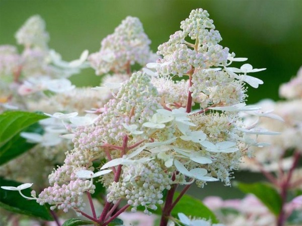 Odmiana EARLY HARRY ® szczególnie wyróżnia się wczesnym i obfitym kwitnieniem. Jest najwcześniej kwitnącą odmianą hortensji bukietowej. Pierwsze kwiaty pojawiają się już w maju (V). Kwiaty białe z lekko kremową nutą. Pod koniec kwitnienia jesienią kwiaty różowieją po czym przybierają kolor purpurowo-czerwony. Kwiatostany początkowo płaskie, w miarę rozwijania się przybierają kształt stożka.