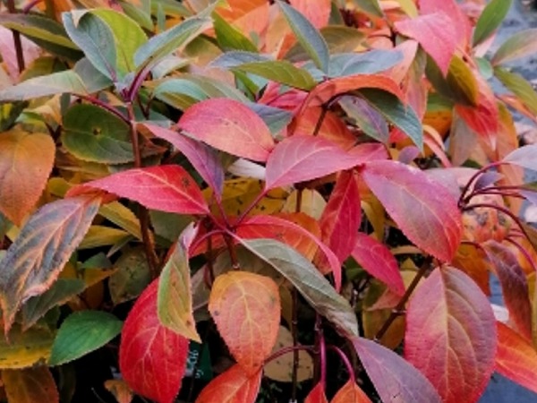 Liście duże, jajowate, ciemnozielone, sezonowe. Jesienią liście przybierają całą paletę barw. Od żółtych, prze pomarańczowe, czerwone aż po ciemne odcienie purpury. Kwiaty są dekoracyjne również po przekwitnięciu, doskonale nadają się na suche bukiety. Pozostawione na krzewie zdobią go również zimą. Jest rośliną w pełni mrozoodporną, może być uprawiana w 3 strefie mrozoodporności. Najbardziej obficie kwitnie na stanowiskach słonecznych.