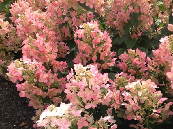 Kwiaty tylko płonne umieszczone w szerokostożkowatych wiechach długości do 30 cm. Kwiaty bardzo liczne i gęsto ułożone początkowo mają białe zabarwienie a następnie przybierają różowy kolor. Końcem lata kwiaty przybierają kolor ciemnoróżowy a nawet czerwony. kolor ten długo utrzymuje się na kwiatach.