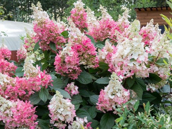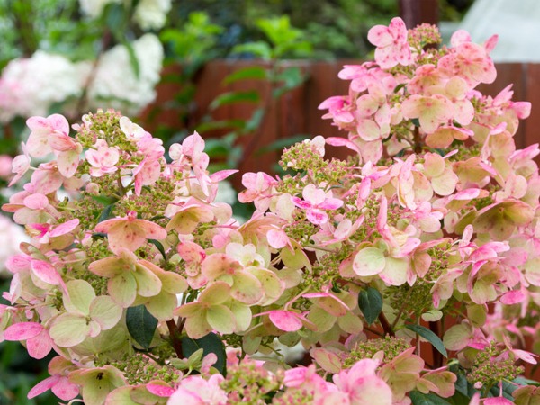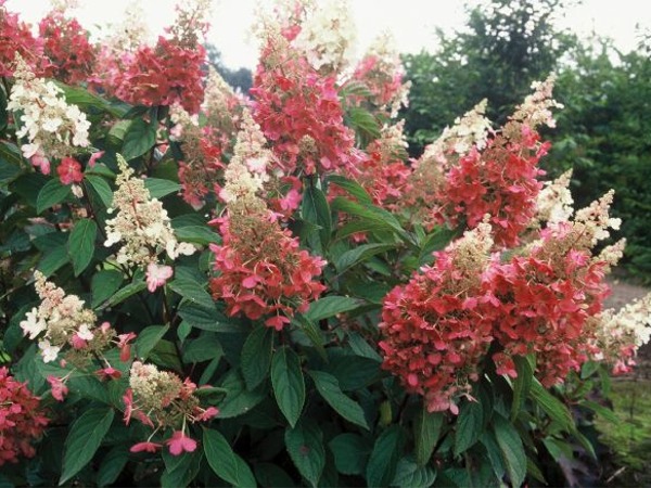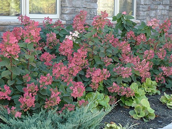 Odmianę PINK DIAMOND charakteryzuje bujny wzrost i olbrzymie, wiechowate kwiatostany. Jest to duży, rozłożysty krzew, dorastający do 2 m wysokości i podobnej szerokości. Pokrój regularny, pędy mocne, ukośnie skierowane do góry. Liście duże, jajowate, ciemnozielone, sezonowe. Stożkowate, bladoróżowe kwiatostany wyrastają na szczytach pędów. Składają się z dwóch rodzajów kwiatów: płonnych (dekoracyjnych) i płodnych (niepozornych). Kwiatostany dorastają do 40 cm długości. Wszystkie jednoroczne pędy są zwieńczone ciężkimi wiechami. Jest to jedna z wcześniej kwitnących odmian hortensji bukietowych. Kwitnienie rozpoczyna się już w lipcu i trwa do września. Po przekwitnieniu kwiaty zasychają, pozostając ozdobą krzewu przez jesień i zimę.