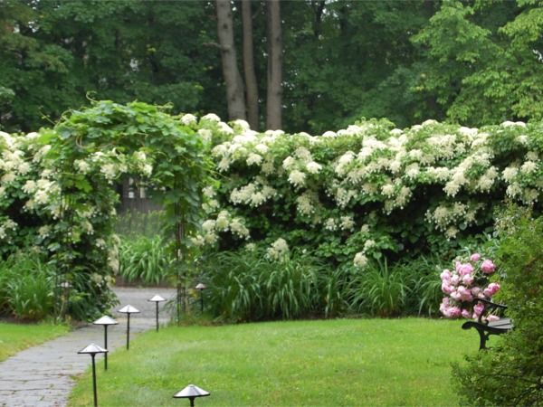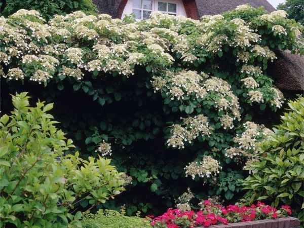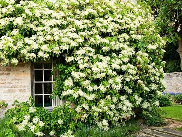 • Najefektowniej hortensja pnąca wygląda, gdy wspina się po starych murach, grubych pniach drzew lub lub innych wysokich podporach.