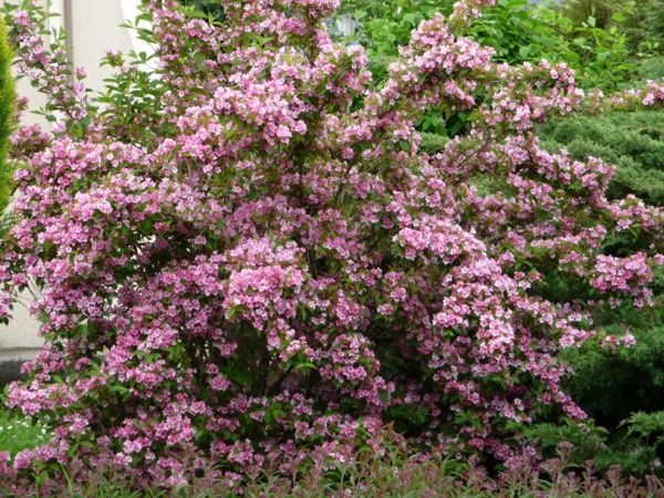 Krzewuszka cudowna RUMBA to średniej wielkości, obficie kwitnący krzew o wyprostowanym, regularnym pokroju, z zewnętrznymi pędami rozrastającymi się na boki. Dorasta do ok. 2 m wysokości przy nieco mniejszej szerokości. Liście lancetowate z zaostrzonym końcem, opadające na zimę, długości ok 10 cm. Koloru ciemnozielonego z czerwonawym odcieniem. Kwiaty ciemne, purpurowo – różowe, 2 cm śr., dzwonkowate ze zrośniętym do połowy czerwonawym kielichem. Kwiaty zebrane w spore wiechy, złożone z 7-21 kwiatów, wyrastające w kątach liści, na krótkich pędach bocznych, wzdłuż zeszłorocznych gałęzi. Krzewuszka cudowna Rumba kwitnie w początku czerwca dość obficie powtarzając w niewielkim stopniu latem oraz jesienią w końcu września.