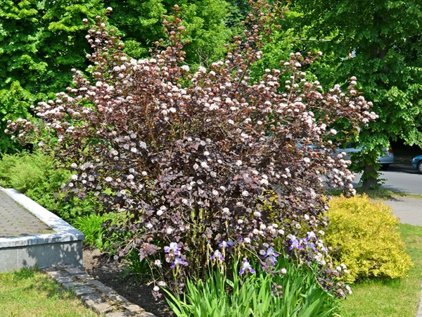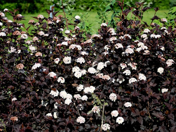 Pęcherznica kalinolistna DIABOLO jest odmianą o charakterystycznym wybarwieniu. Młode pędy wyrastają w kolorze mahoniowo-brązowym. Liście w kolorze ciemno-czerwonym z metalicznym połyskiem, jesienią przebarwiają się na kolor czerwono-brązowy. Zakwita w czerwcu (VI), kwitnie zawsze obficie i w tym czasie jest bardzo dekoracyjna. Kwiaty biało-kremowe lub delikatnie zaróżowione. Daje nektar i bardzo dużo pyłku. Wydajność miodowa wynosi około 65 kg/ha.