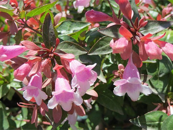 Jest to bardzo trwały i rzadko spotykany w Polsce, zimozielony lub półzimozielony krzew. Jest on wyjątkowy dzięki ozdobnym, błyszczącym liściom oraz liliowo-różowym kwiatom, które przepięknie pachną przez całe lato. Abelia osiąga od 90 cm do maksymalnie 150 cm wysokości i tyle samo szerokości. Ponadto charakteryzuje się zwartym, gęstym, rozłożystym pokrojem. Gałęzie najpierw wyrastają ukośnie do góry, w późniejszym czasie przewieszają się do ziemi. Liście, długości 4-7 cm, wąsko owalne do owalnych, zaostrzone i całobrzegie. Wiosenne liście przybierają odcienie jasnego brązu, jesienią zmieniają barwę na różowawo-brązową. Podczas łagodnych zim liście utrzymują się na krzewie.