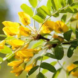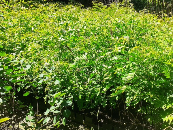 Liście skrętoległe, długość do 30 cm, nieparzystopierzaste, złożone z 11-25 listków jajowatych lub eliptycznych, całobrzegich. W naszym klimacie w czasie surowych zim i późnowiosennych przymrozków młode pędy czasem nadmarzają , krzew jednak szybko się regeneruje i bywa, że zakwita w późniejszym terminie jeszcze w tym samym roku (lipiec – sierpień). Rośnie dobrze na każdej glebie.