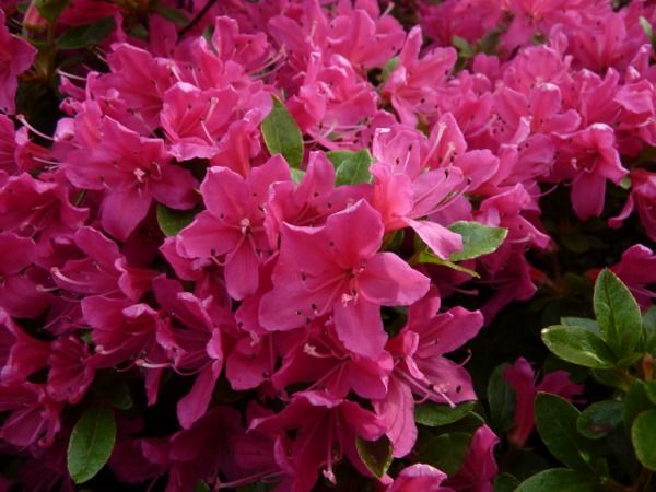 Azalia japońska KERMESINA to niewielki obficie kwitnący wiosną krzew o różowej barwie kwiatów. Została wyselekcjonowana w Holandii ok. 1950 roku. Pokrój karłowy, płasko-kulisty, osiągający od 0,5 m do 1 m wys. (w wieku 10 lat). Liście od 1,5 do 4 cm długości, ilość liści zimujących zależy od surowości zimy. Kwiaty karminowe, w środku z delikatnym, czerwonawym rysunkiem, drobne, od 2,5 do 3,5 cm średnicy, ale bardzo liczne. Kwitnie obficie w drugiej połowie maja.