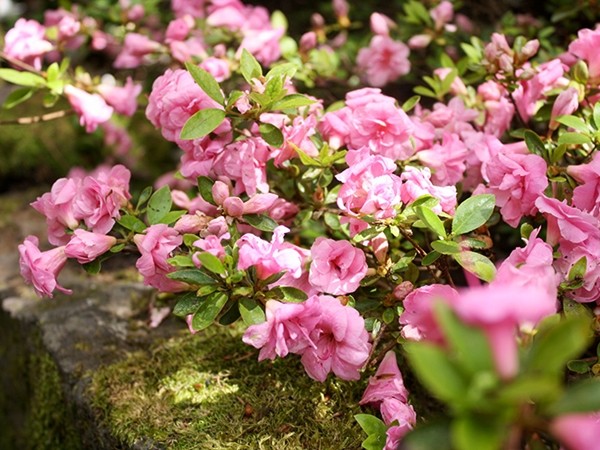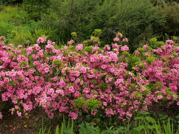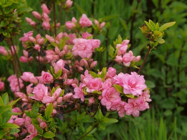 Azalia japońska ROSEBUD to niewielki krzew o pokroju poduszkowatym dorastający do 50 cm wysokości i 90 cm szerokości. Kwitnie obficie w maju pełnymi, jasno różowymi kwiatami.
