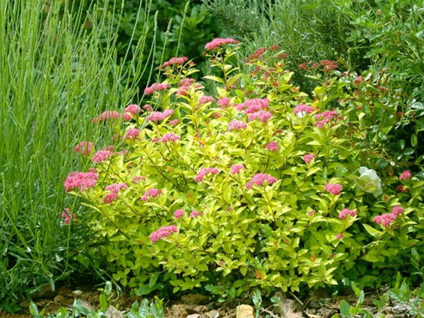 Gatunek rośliny wieloletniej należący do rodziny różowatych. Pochodzi z Azji, z obszaru Chin, Japonii i Korei. W Polsce jest uprawiany jako roślina ozdobna. Oprócz odmian pochodzących od typowej formy tego gatunku znajdują się w uprawie także kultywary i mieszańce tawuły oznaczane jako Spiraea hybr. Tawuła japońska GOLDMOUND charakteryzuje się niewielkim wzrostem oraz różową barwą kwiatów pojawiających się latem. Zwarty krzew o płaskokulistym pokroju dorastający do 80cm wysokości i większej szerokości. Liście eliptyczne, ostro zakończone, na brzegach piłkowane, intensywnie żółte przez cały okres wegetacji. Latem (VI – VII) pojawiają się różowe, drobne kwiaty, zebrane w płaskie kwiatostany o średnicy do 10cm. Kwitnie bardzo obficie na końcach jednorocznych pędów.