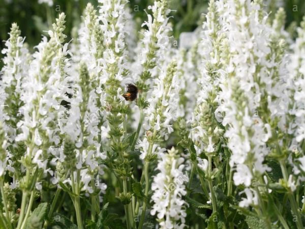 Szałwia omszona ADRIAN jest dość gęsto ulistniona. Kwiaty grzbieciste, białe, wzniesione. Kwitnie od czerwca (czasami już od maja) do sierpnia. Pachnie i wabi owady. Wydziela nektar bardzo obficie. Wydajność miodowa wynosi 150kg/ha.
