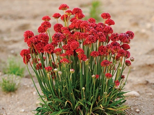 Zawciąg szerokolistny BALLERINA RED to odmiana pochodząca z Portugalii. Tworzy trawiaste poduchy z podłużnymi, jajowatymi liśćmi. Wyrasta do 25 cm wysokości wraz z kwiatostanem. Główki kwiatostanowe są duże, karminowo-czerwone osadzone na bezlistnych szypułkach.