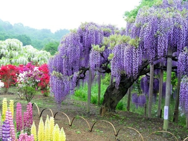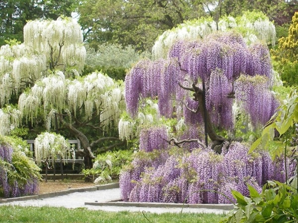 • Glicynię można też prowadzić jako drzewko. Jego pień tworzymy z 2-3 splatających się pędów (początkowo muszą mieć podpórkę).