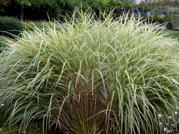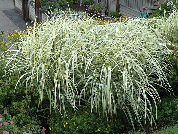 Miskant chiński VARIEGATUS to niezwykle charakterystyczna odmiana miskanta chińskiego. Jest jedną z wyższych odmian, osiąga do 200cm wysokości. Tworzy sporych rozmiarów kępy liści przewieszających się w około 3/4 długości. Wśród innych odmian miskantów chińskich wyróżnia się przede wszystkim kolorem liści. Białe, wyraźne obrzeżenia i pasek mocno widoczne na całej długości liścia, tworzą jasny, wyraźny akcent kolorystyczny w ogrodzie.