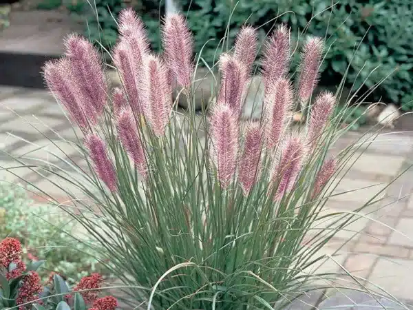 Rozplenica japońska RED HEAD to odmiana o półkulistym, zwartym pokroju, wyjątkowo efektowna w czasie kwitnienia. Tworzy kwiatostany o czerwonym zabarwieniu, które pięknie kontrastują z całością kępy, która w budowie przypomina odmianę HAMELN.