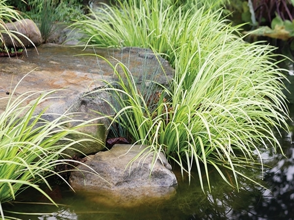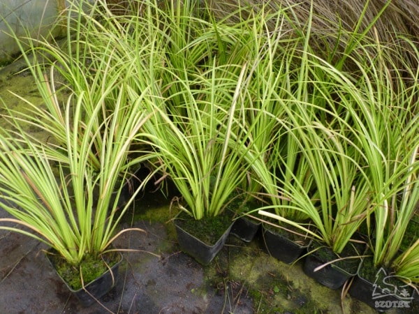 Na stanowiskach naturalnych występuje we wschodniej Azji oraz Japonii. Można go znaleźć rosnącego grupami nad brzegami jezior, rzek, bagnach, w zaroślach trzcinowych i na wilgotnych łąkach. Tatarak trawiasty OGON jest bardzo efektowną ozdobną formą, liście płaskie, układające się w charakterystyczne wachlarze, trójkolorowe żółto-zielono-białe. Kłącze płożące się, pędy płaskie, wyprostowane, puste w środku. Osiąga 20-30 cm wysokości. Roślina wyglądem przypomina trawy. Kwitnie w czerwcu i lipcu, kwiaty białawo zielone, prawie niewidoczne, zebrane w niepozorne kolby na szczytach pędów kwiatostanowych.